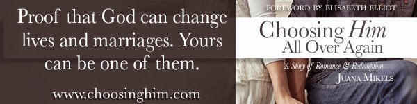 As I’ve been helping promote Juana Mikel’s book, Choosing Him All Over Again: A Story of Romance and Redemption, different women have come to mind. They’re either separated or divorced, and I’ve thought how helpful–how life changing–this marriage resource could be for them. Names sadly keep surfacing because so many marriages suffer brokenness. But lately, an eye-opening thought has superseded these: