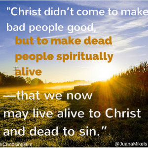 Speaking of God’s desires for us in our marriages, Juana says,”He wants to make us less selfish and more loving” (pg. 300). While Choosing Him All Over Again touches on many aspects of marriage, this truth of dying to self especially pierces my heart. For you, something different might resonate deeply. But all of us can learn from Juana’s experiences and the Biblical insights God has given her.